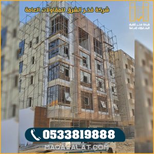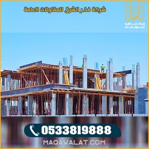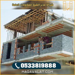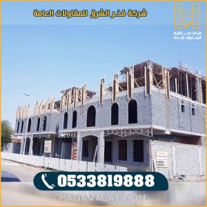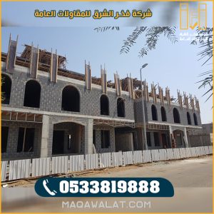 إن كنت تبحث عن جهة متخصصة وموثوقة في مجال البناء فنحن شركة فخر الشرق للمقاولات العامة افضل جهة معتمدة في منصة مقاول احصل الأن على كافة خدمات ، بناء المباني ، بناء العمائر ، بناء الفلل بطرق صحيحة وبشكل مميز بواسطة فريق عمل مميز في مجال البناء والذي يقودهم افضل مقاول بناء بالمملكة .